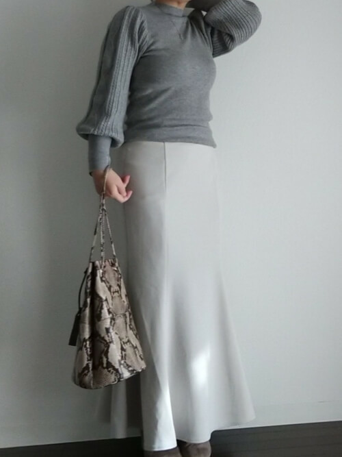 カジュアルさの残るトップスに合わせても、大人っぽくきれいめに着こなせます。
