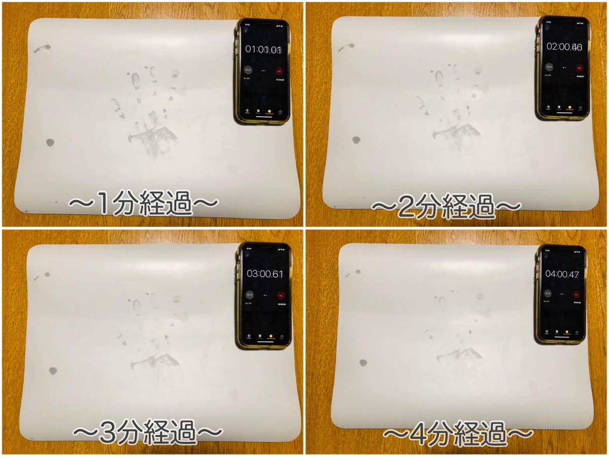 4分間の間でどれくらい速乾性があるのか検証してみました。
