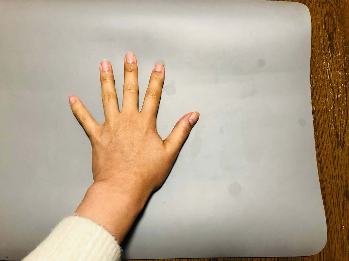 お風呂上がりを想定して、手のひらを濡らしたままソフトバスマットにタッチ。
