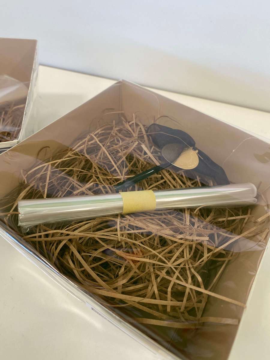 中の 紙パッキン、リボン、ビニールもセットになっているので、簡単にラッピングができます。