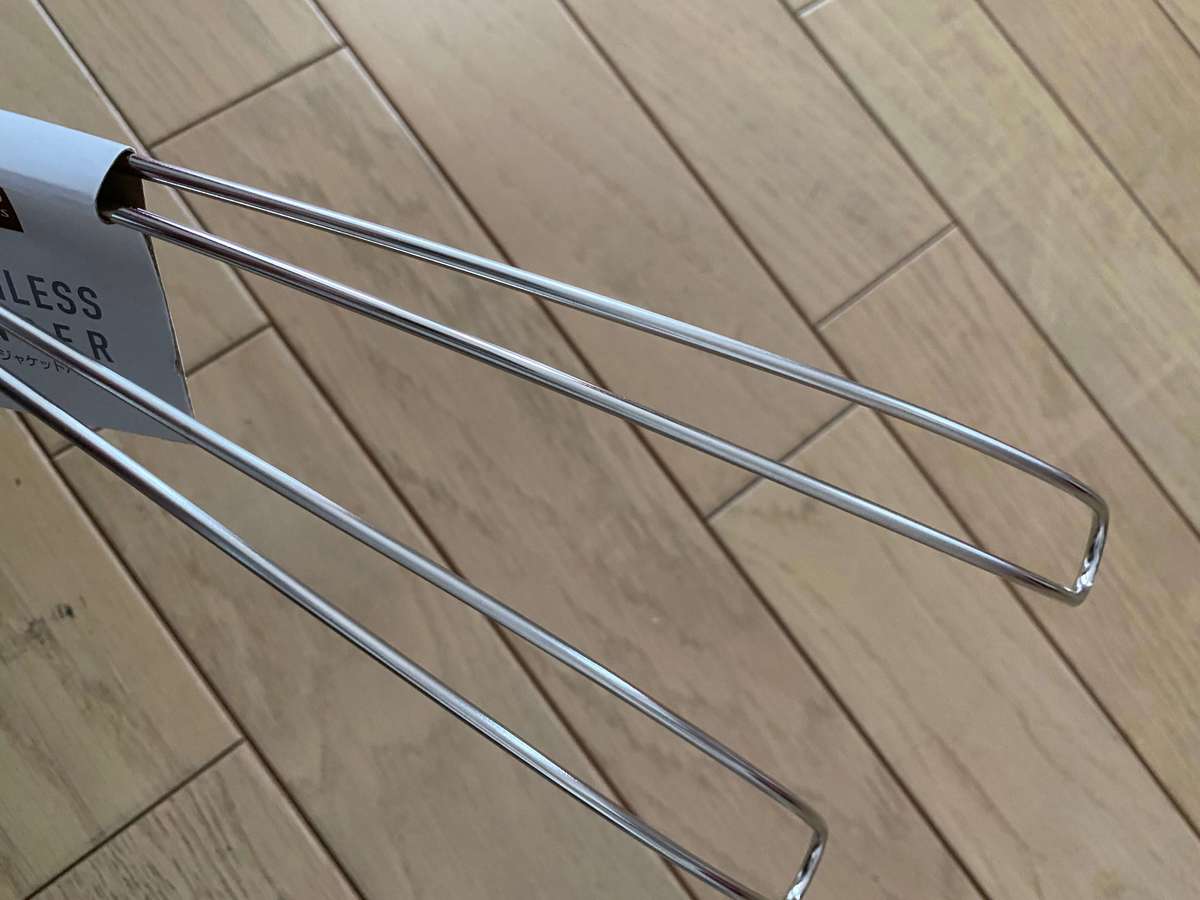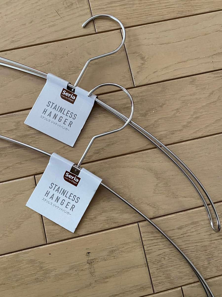 今までも、ステンレス製のハンガー使っていましたが、肩の部分は1本もものだったので、伸びやすい服をかけるのは気が引けていました。しかし、全てを統一したいという願望もあり……。