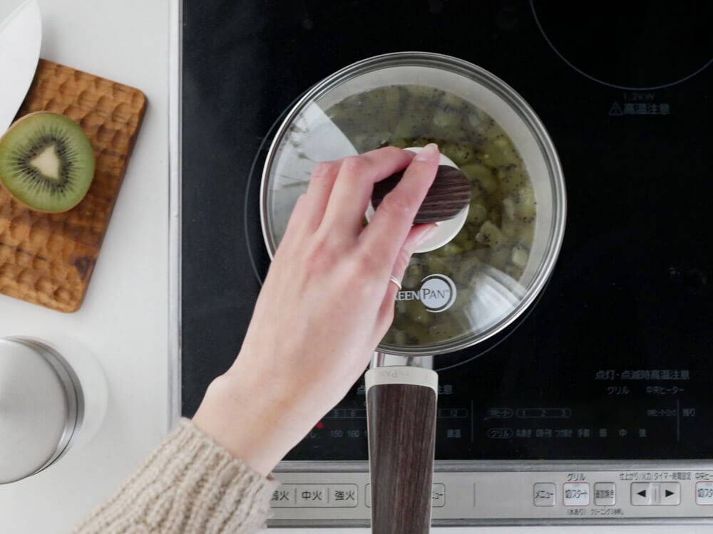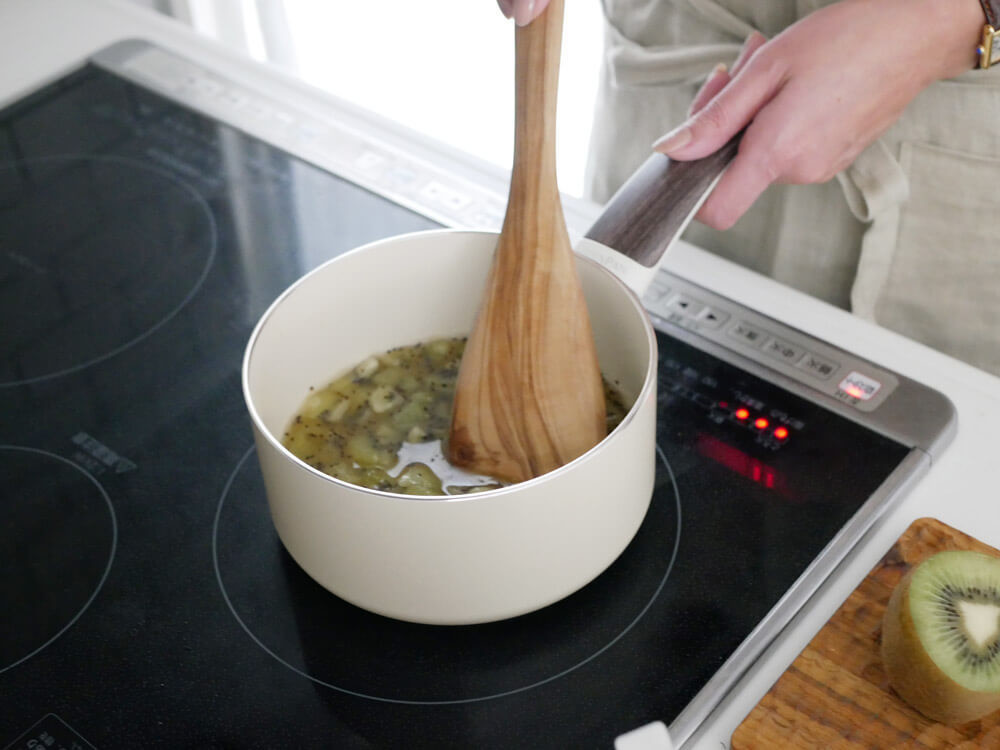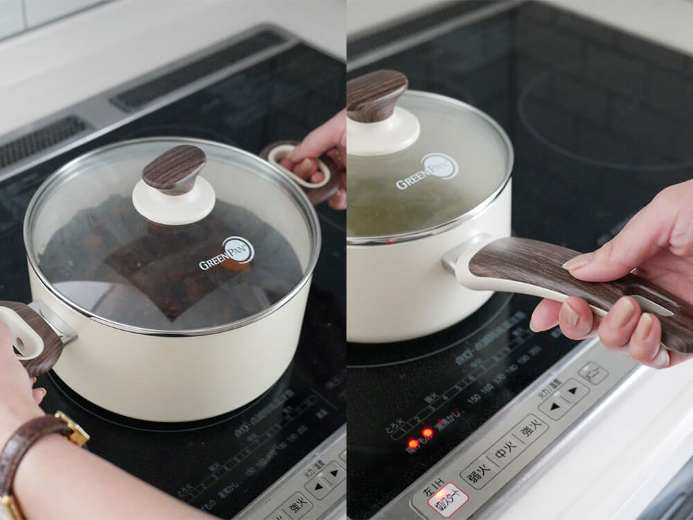 付属のガラス蓋は、食材の火の通りも確認しやすく調理中とっても便利ですね。