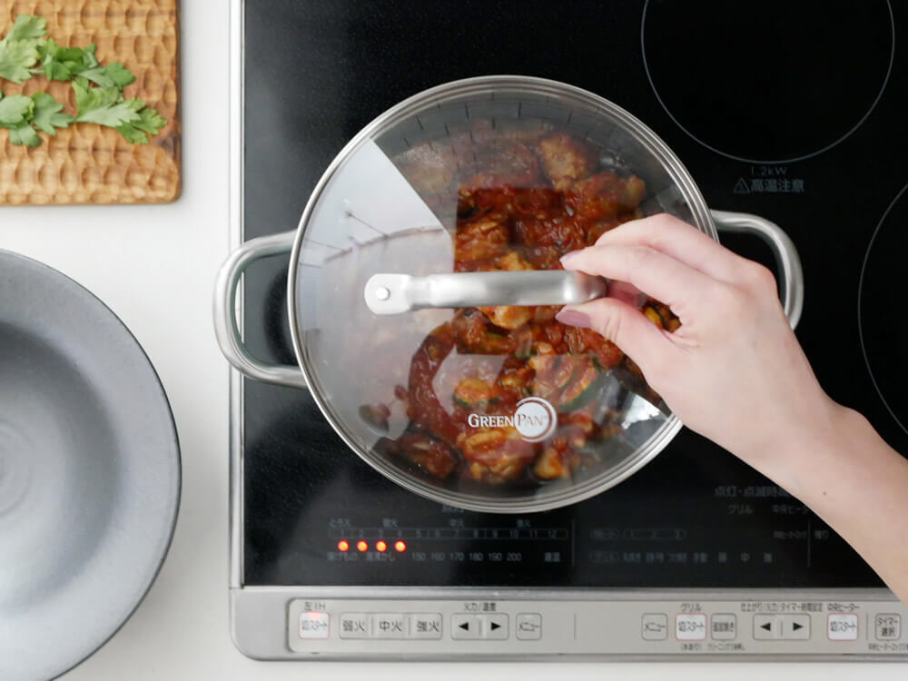 全面が透明なガラス蓋なので、食材の火の通りも確認しやすくとっても便利ですね。