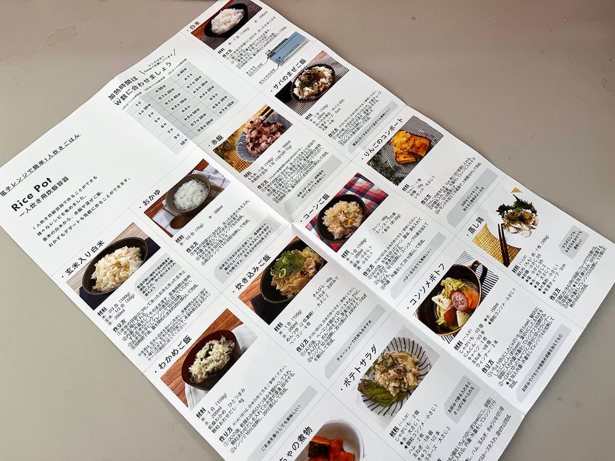 箱にご飯以外におかずも作れると書かれていましたが、中には何品かのおかずのレシピも封入されています。