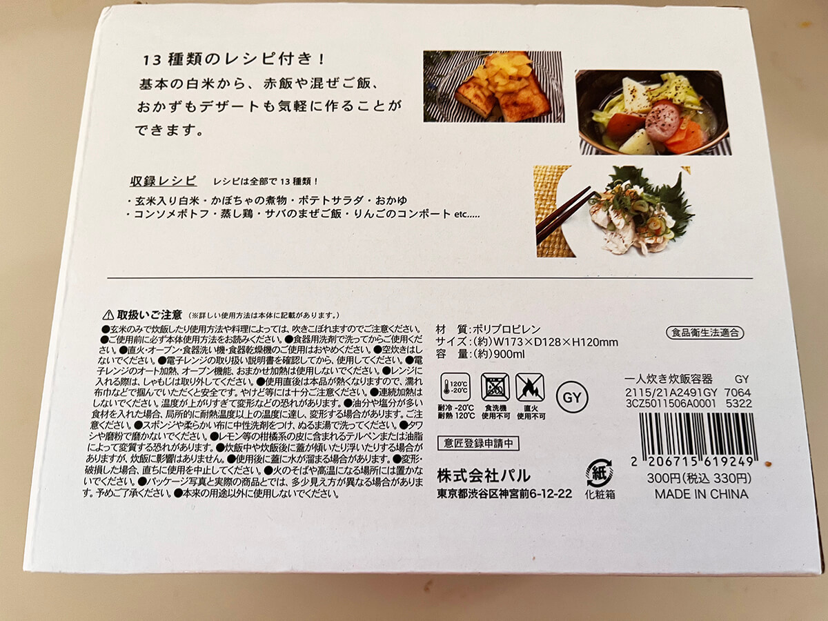 最近は高級な炊飯器も多く、炊飯器=高級家電というイメージすらあります。そうしたなか、税込330円で1人分のご飯が気軽に炊け、しかも繰り返し使える容器が本当にこの世に存在するのが、実はちょっと半信半疑でした。