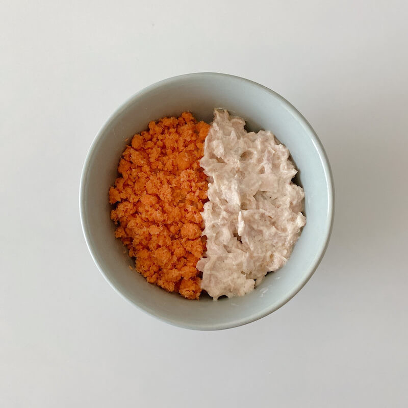 - 生でも食べられるほど新鮮なアトランティックサーモンの脂が乗った中落ちだけをていねいにほぐしました (120g) 398円