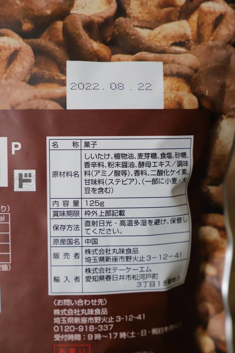 こちらで全量です。コストコは300g入りですので、125g入りのドンキのしいたけスナックは少なく感じてしまいます。