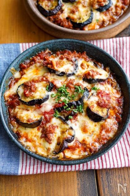 ①茄子のミートソースグラタン