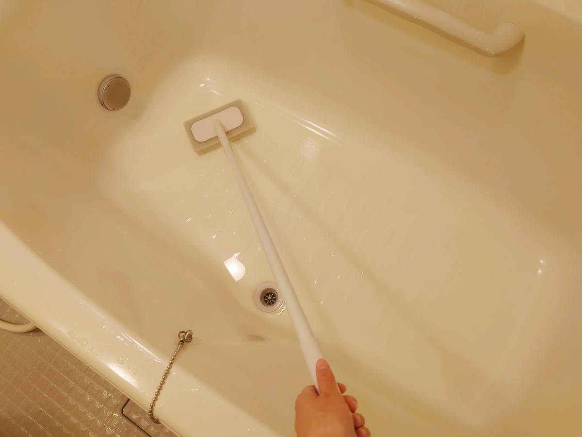 浴槽の外から手を伸ばすだけで掃除がラクになりました。
