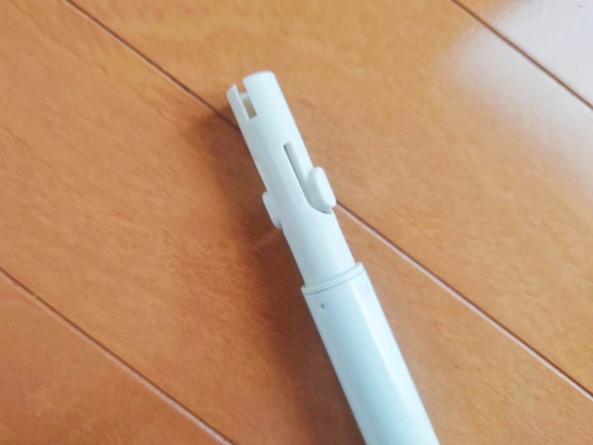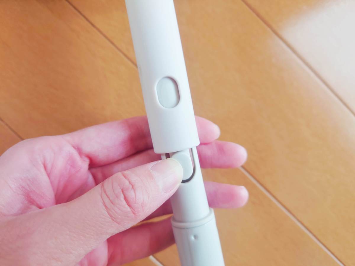 使い終わってジョイントを解除する際は、丸い出っ張り部分を押して、ヘッドからポールを引き抜くだけです。