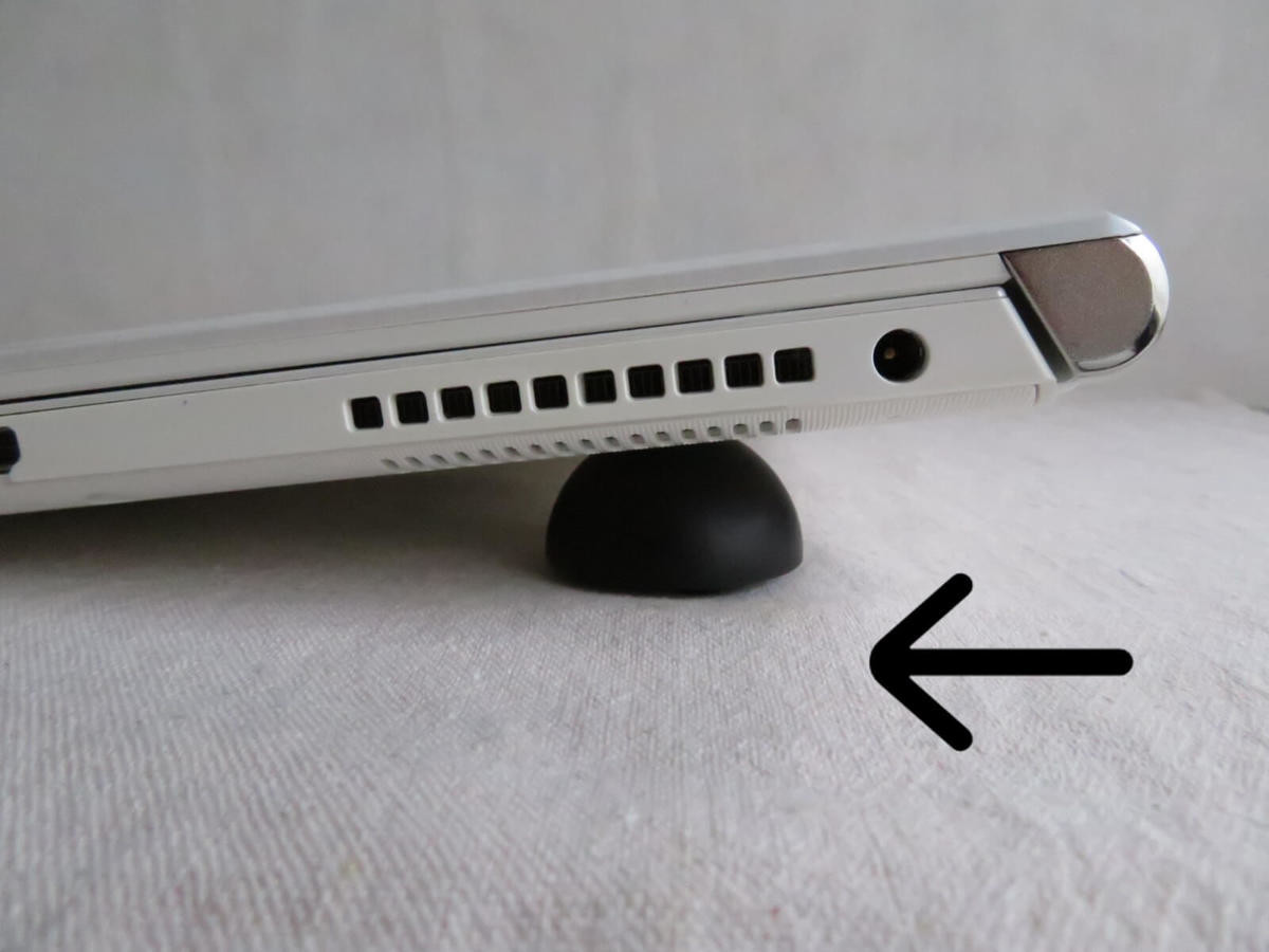 PCに貼り付けるタイプの放熱スタンドもありますが、この商品の方が断然便利。テープ跡も残らず、自由に位置を調整することもできますよ。