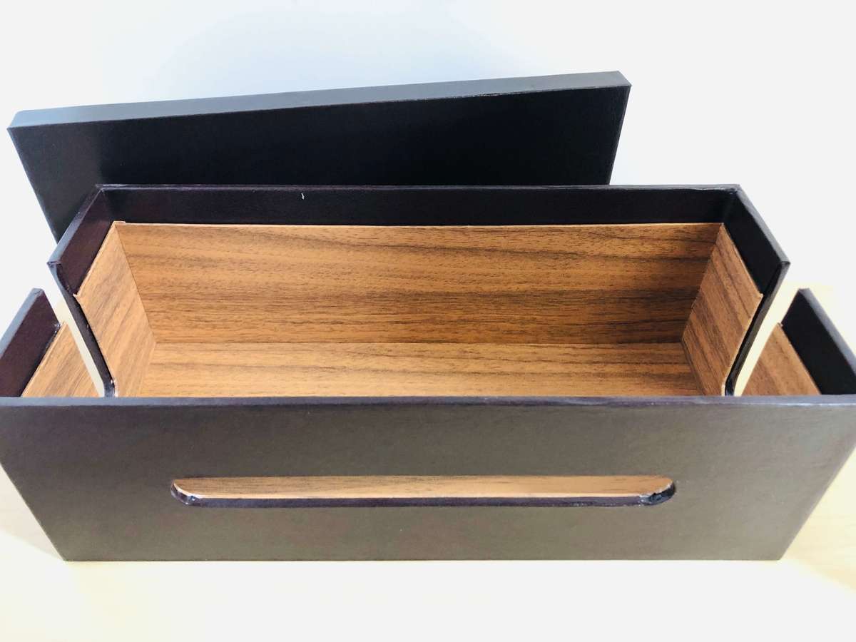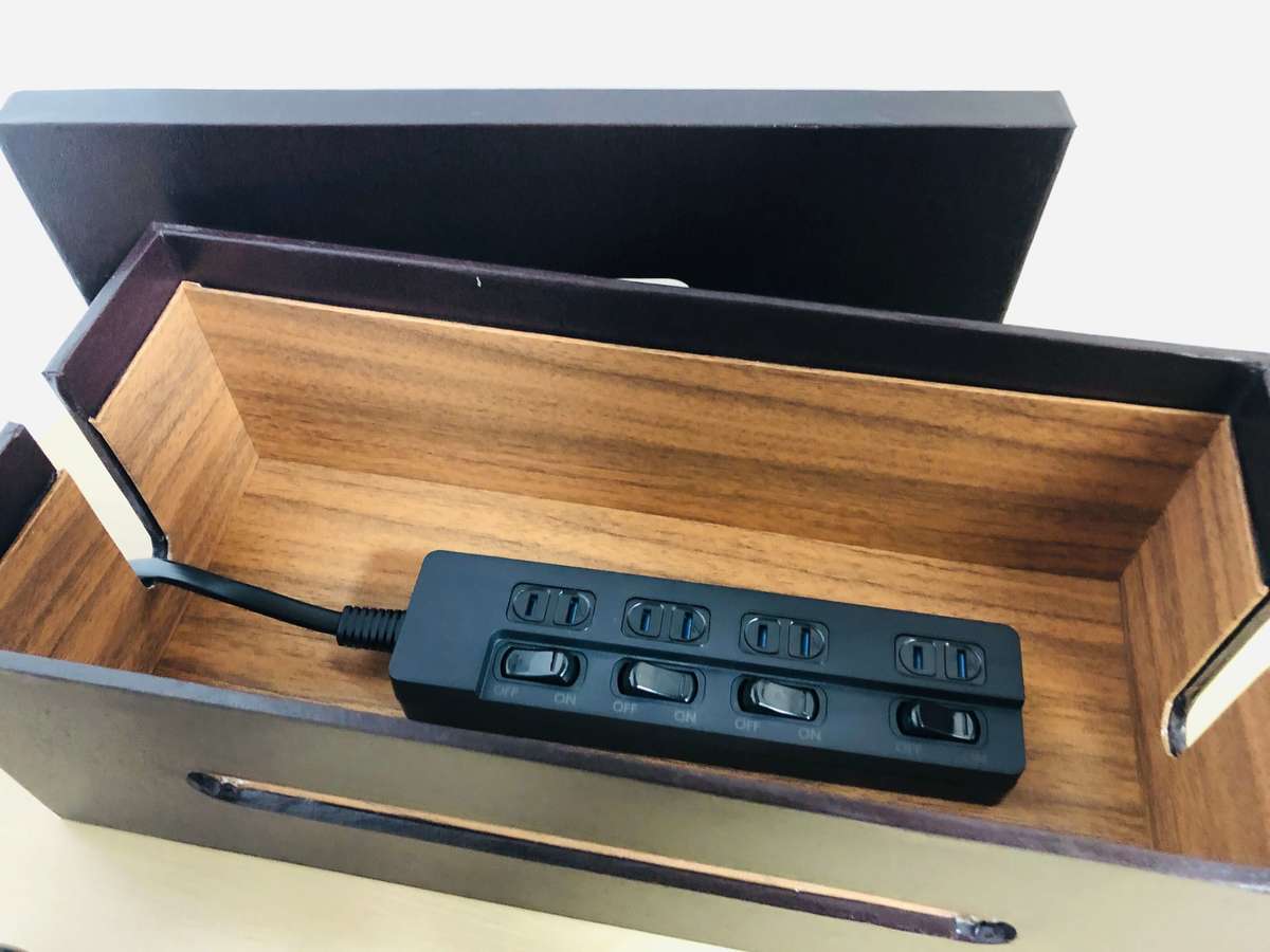 さらにフタを開けると、温かみのある木目調の箱がピッタリ密着されています。電源タップが入る場所はしっかりした厚みもあり、とても丈夫です♡