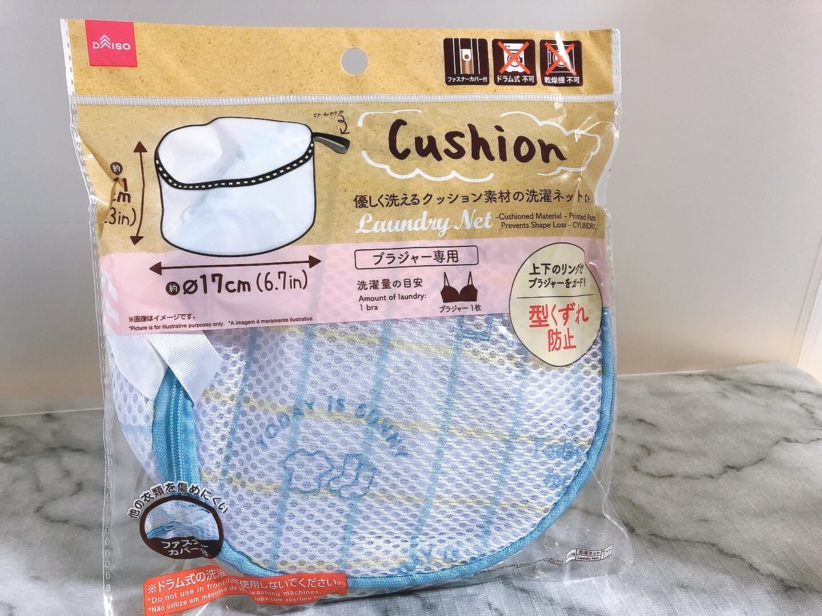 こちらは、ブラジャーの型崩れを防止して丁寧に洗ってくれる「ブラジャー専用ネット」(110円 税込)。