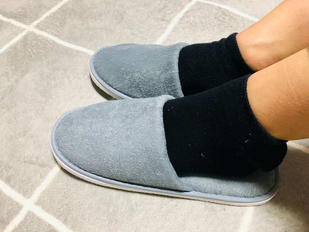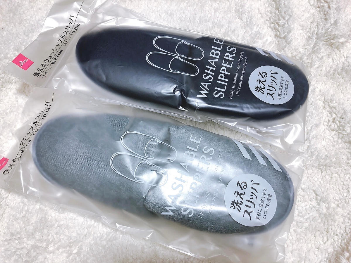 こちらがSNSでコスパ抜群だと話題の「洗えるスリッパ」(110円 税込)。カラーバリエーションが豊富で、スリッパなのに洗えるという何ともうれしいアイテム。