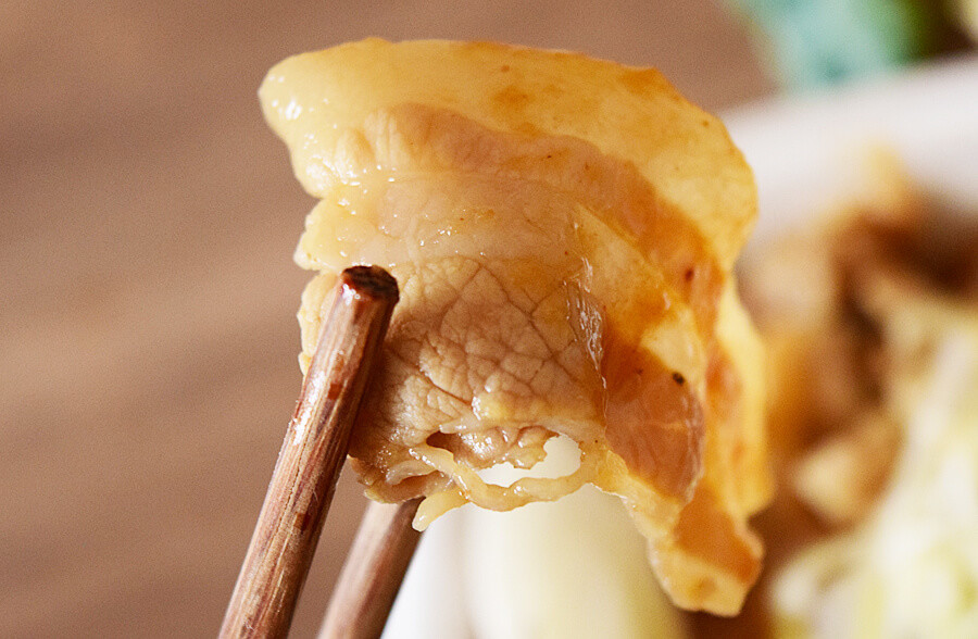 まずは、豚肉をいただきます。生姜の味はしっかりとついているものの、醤油ベースですっきりと仕上げられているため「生姜がガツンとくるほどではない」と思いました。