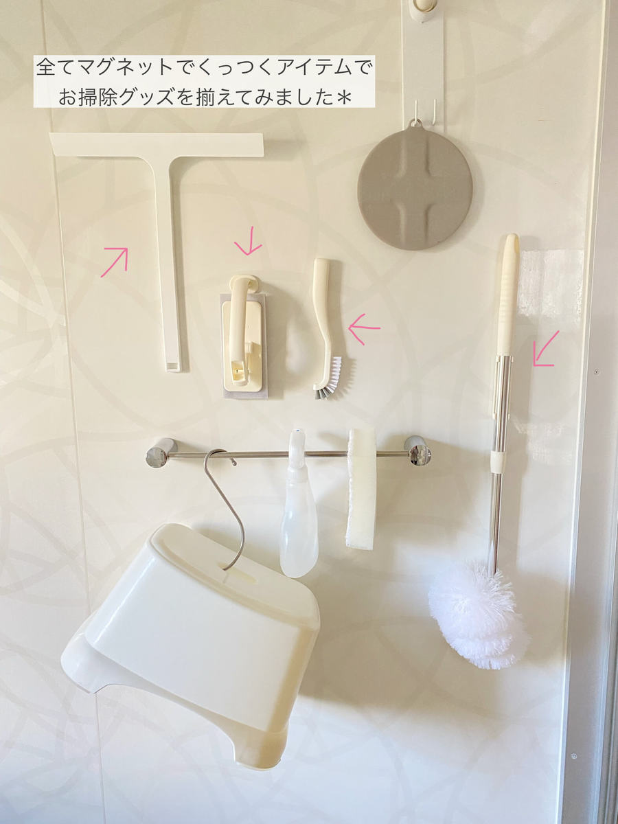 マグネット収納大好きな私。毎日使うお風呂掃除アイテムをどうにかすっきり収納したくて色々なアイテムを吟味していたところ「掃除用品そのものがマグネット収納できるアイテム」に出会えました。