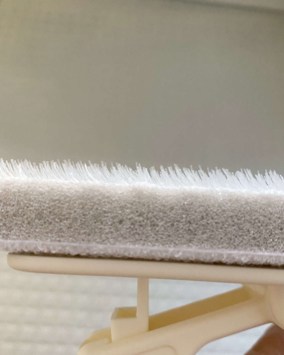 よく見るとスポンジの表面にびっしり細かくてしっかりした毛が付いていて、床の汚れを絡めとってくれます。