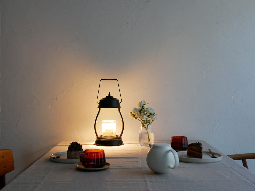 レトロ感のあるランタン風のフォルムは、オブジェや植物と並べて棚上やデスク上、玄関や寝室に並べ置きしたくなりますね。