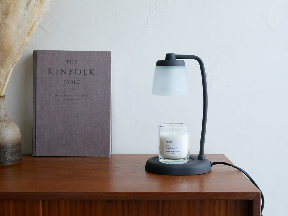 「コンテンポキャンドルウォーマーランプ」は、モダンな街灯のようなデザインで、置くだけでもインテリアに。さらに4種類の「香るキャンドル」と合わせてのご購入ができるから、届いたその日にお楽しみいただけます。