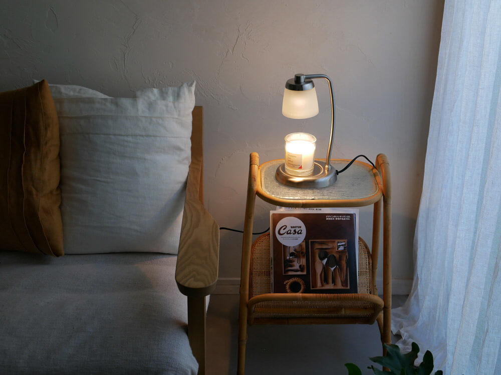 火を使うよりすばやく香りが広がり、溶けたキャンドルを透した灯りは柔らかな間接照明に。