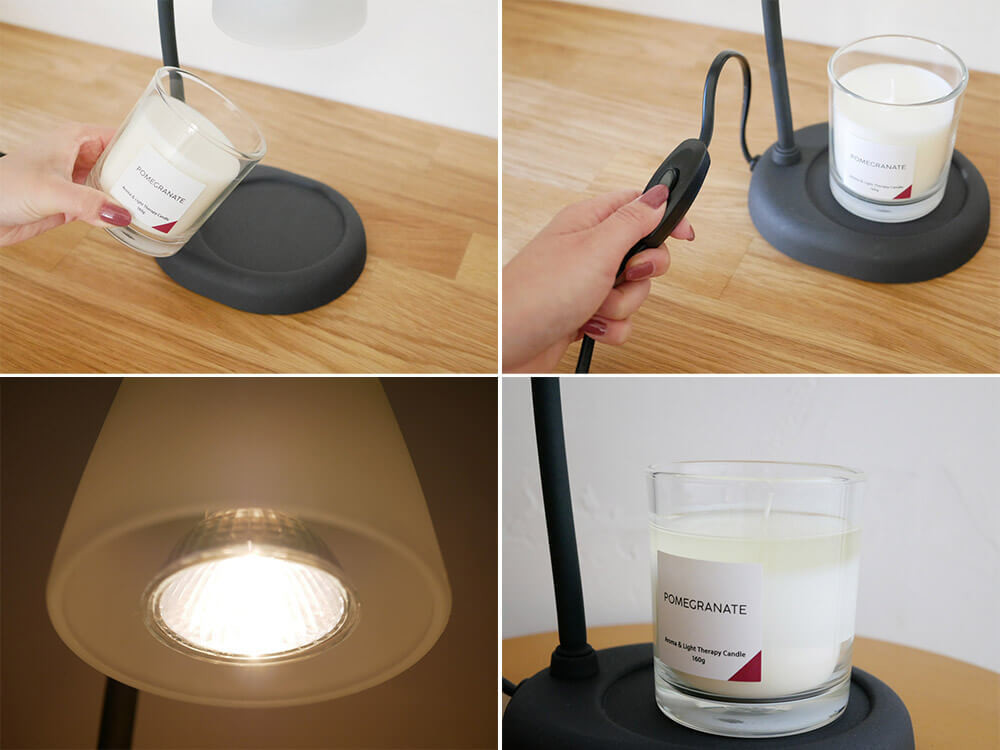 使い方は、コンセントにつなぎ、キャンドルをセットしてスイッチを入れるだけ!