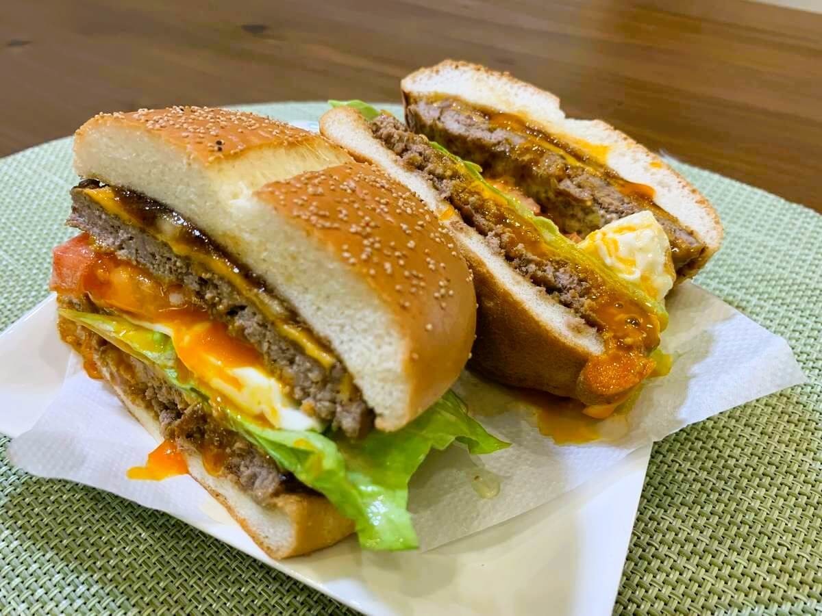 半熟卵が入ると、月見バーガーっぽさもあって、特別な気持ちに。