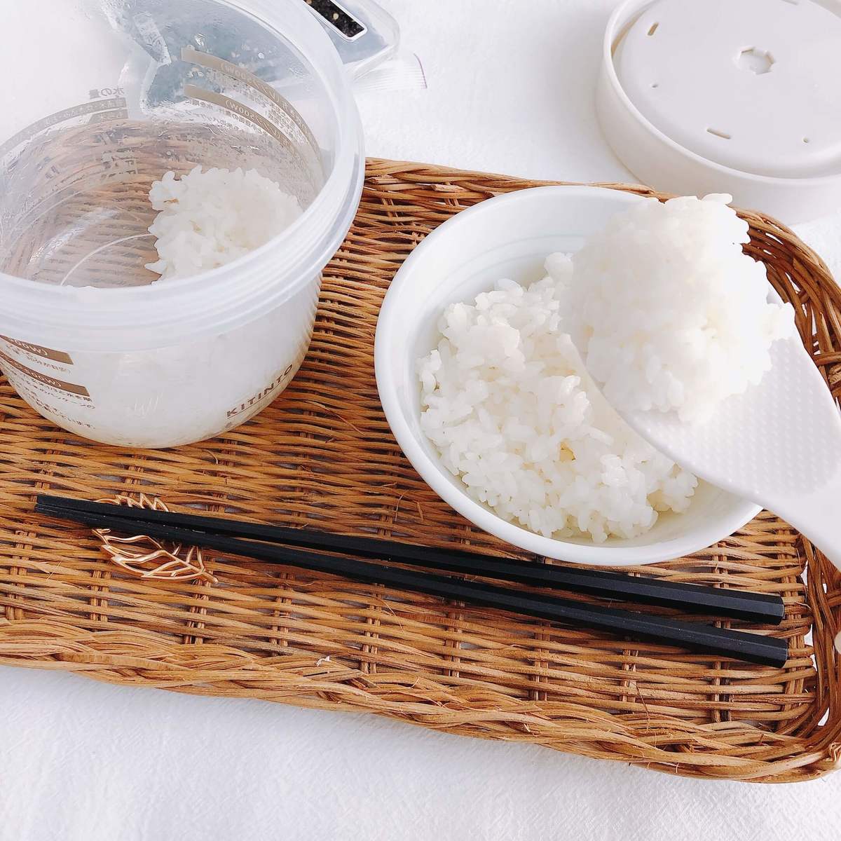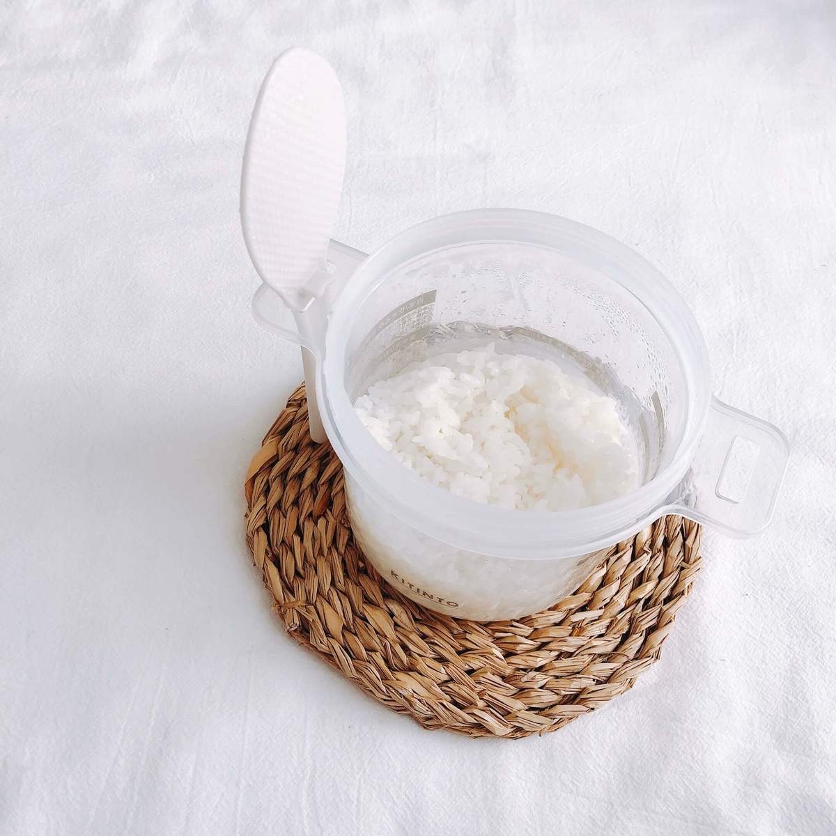 この容器で、電子レンジでごはんが炊けるなんて……と半信半疑だったので、まずは基本的な白米で使用してみました。