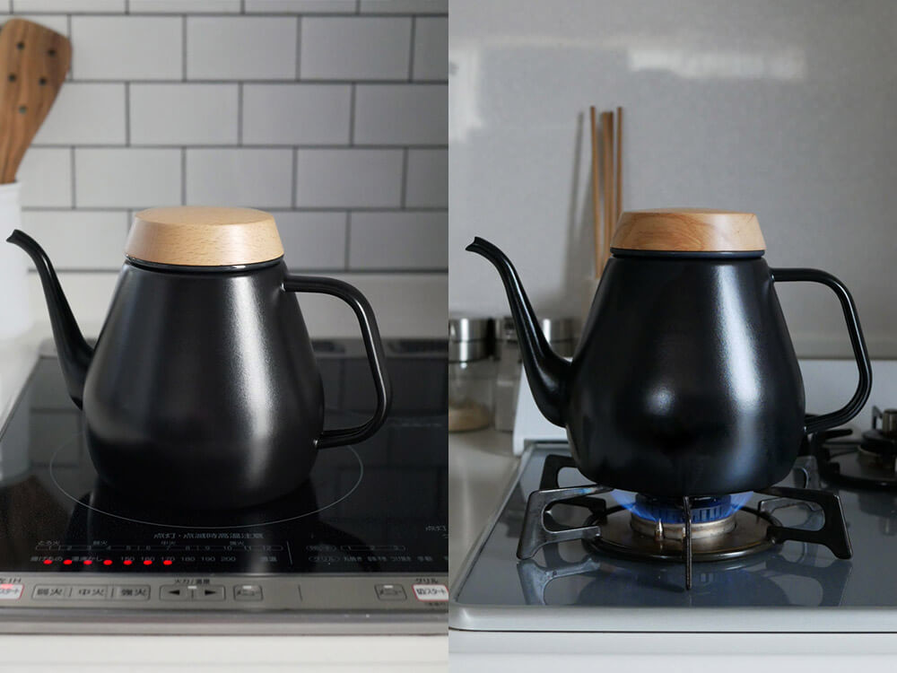 「ドリップケトル」の推しポイントはこだわりの注ぎ口などの他に、IH、ガスコンロ対応なところ。