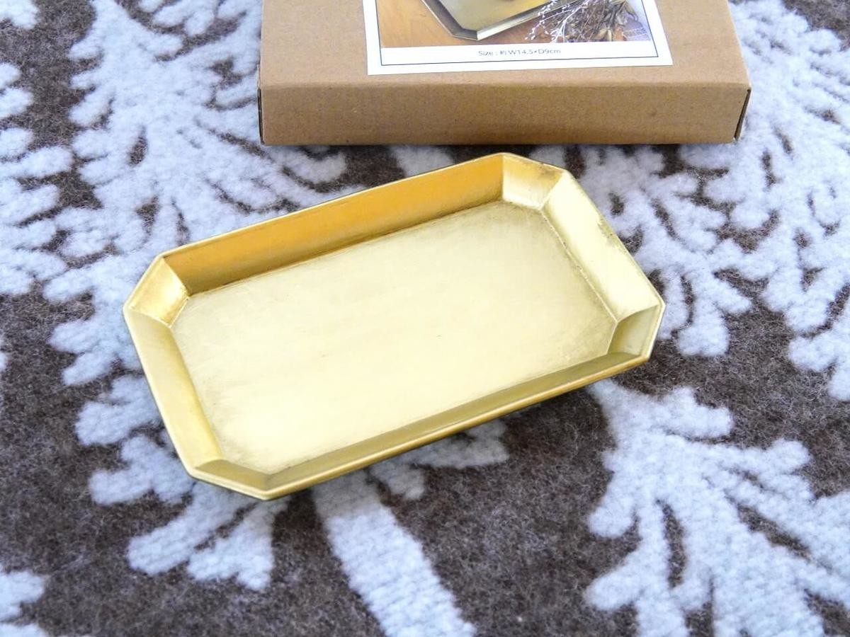 使い込んだ真鍮のような質感の、高級感のある素敵なトレーを見つけました。