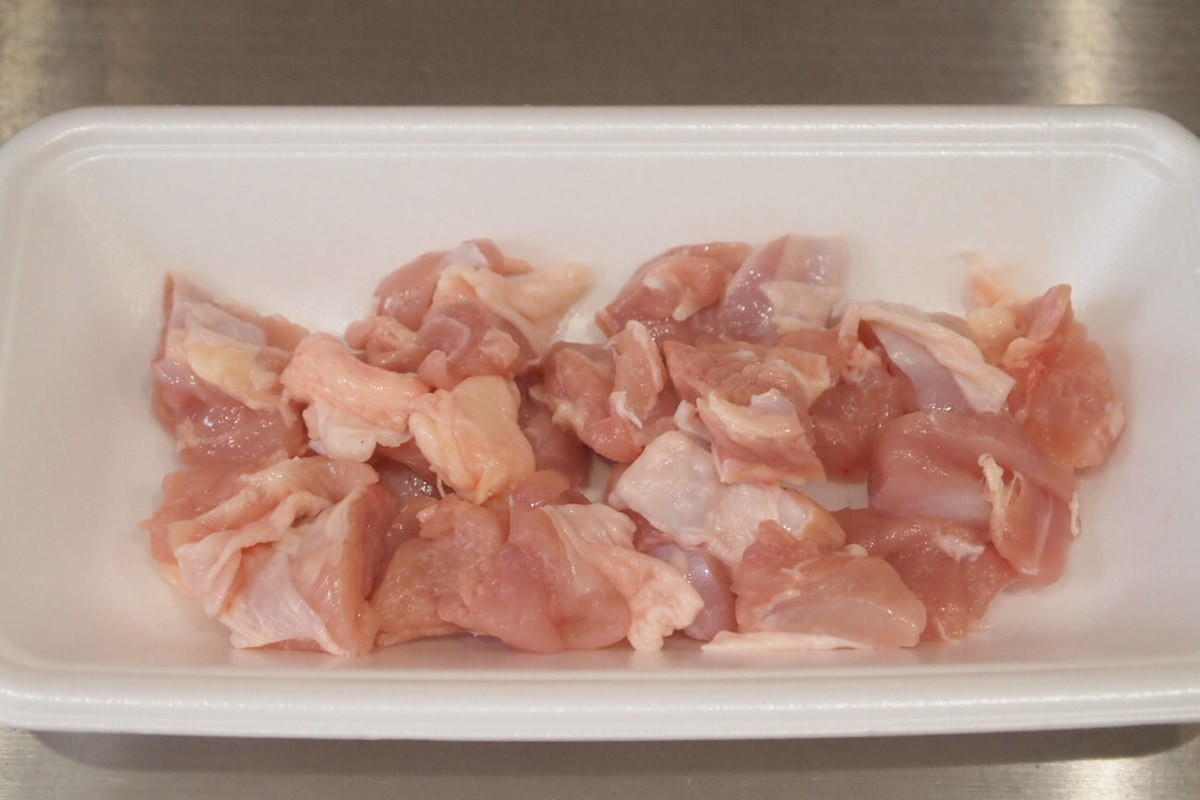 鶏肉は、1.5㎝幅に切っておきましょう。
