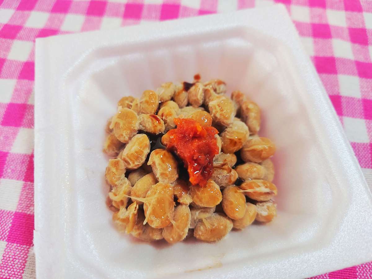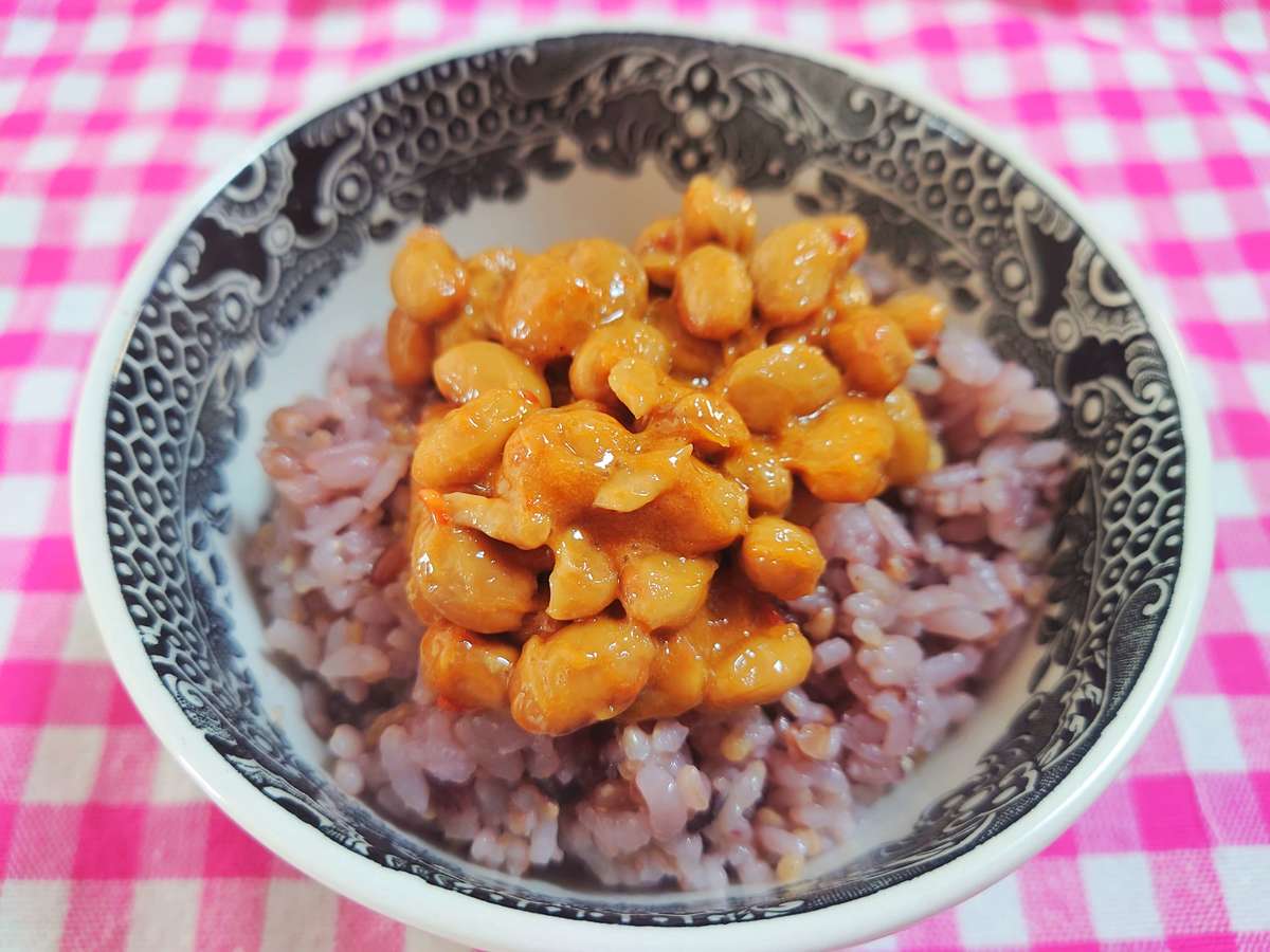 納豆がいつもより赤い!ごはんにのせていただきます。