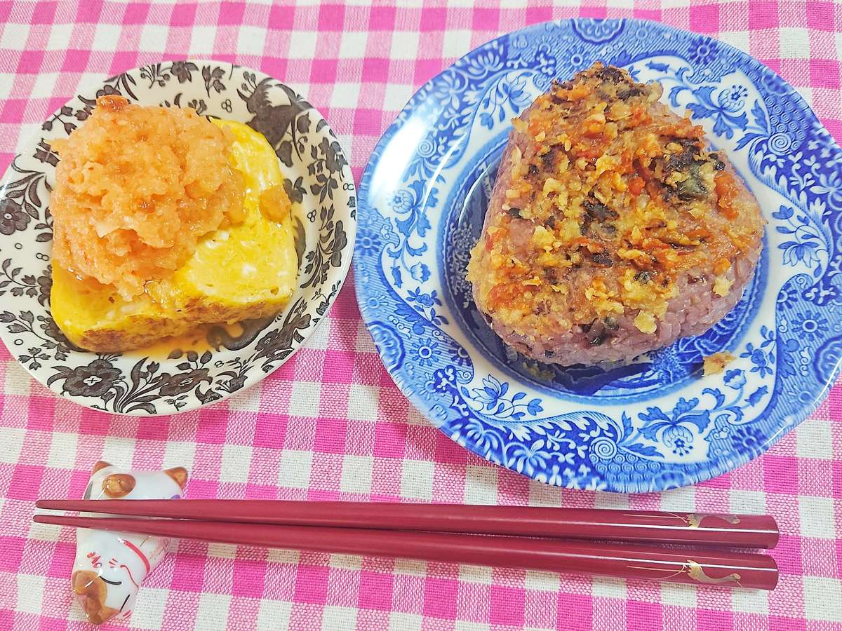 味噌焼きおにぎりと卵焼きの大根おろしにかんずりを合わせました。