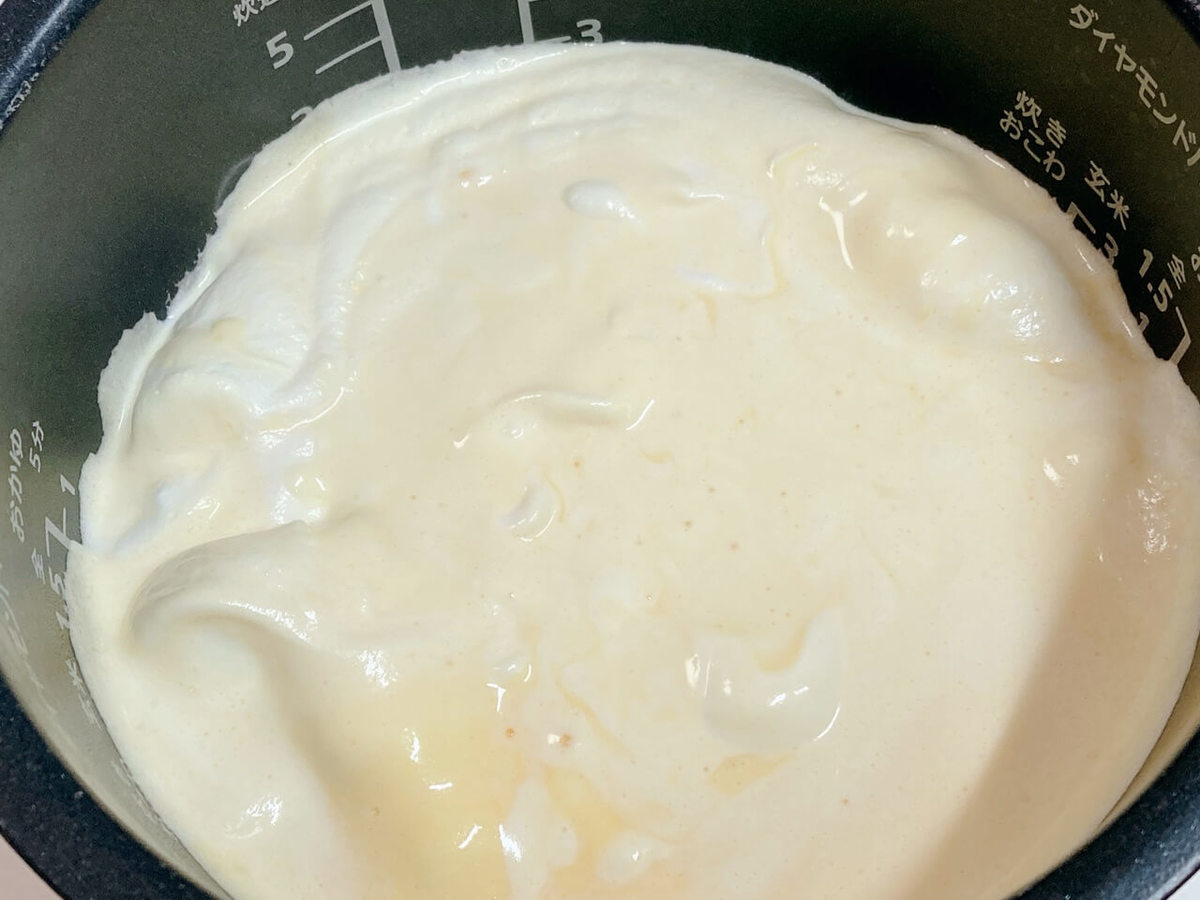 ⑥炊飯器に油を塗り⑤を流しいれ、炊飯モードで炊いたら完成!