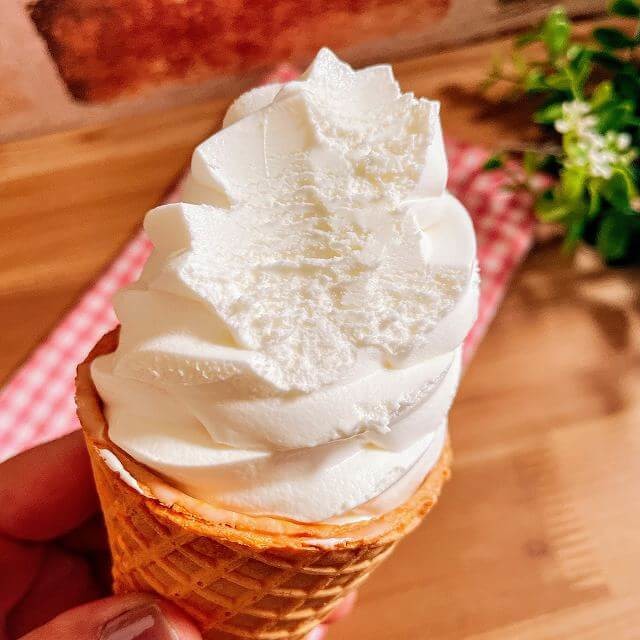濃厚で生クリーム感が強いので、後味のすっきりさが特長の牛乳ソフトクリームという感じではないですね。
