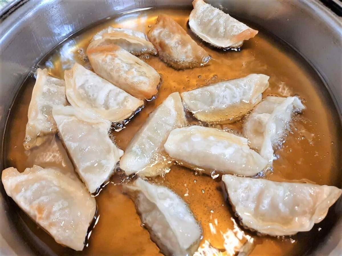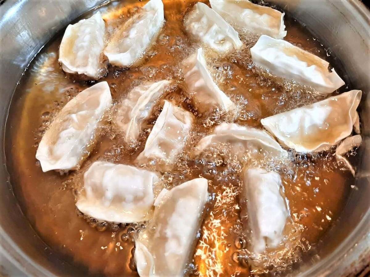 150℃~160℃の油に、凍ったままの餃子を入れます。