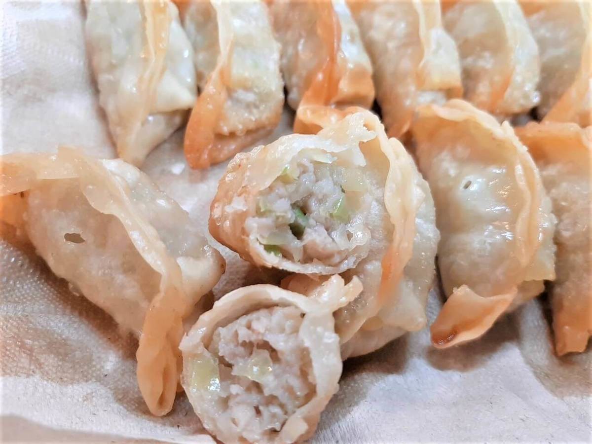 中はこんな感じです。揚げ餃子にすると、周りがパリッと中がジューシーで肉感のある餡があっつあつ。