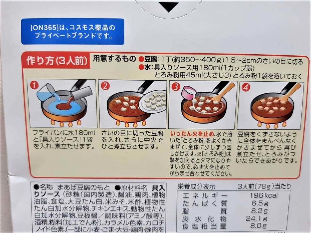 こちらはひと箱で6人前の量が作れる麻婆豆腐の素。