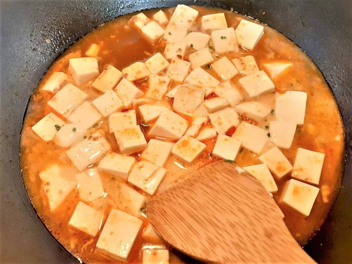 豆腐を崩さないように優しく混ぜたら出来上がり。