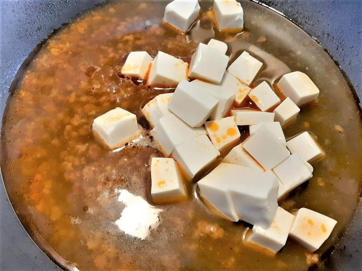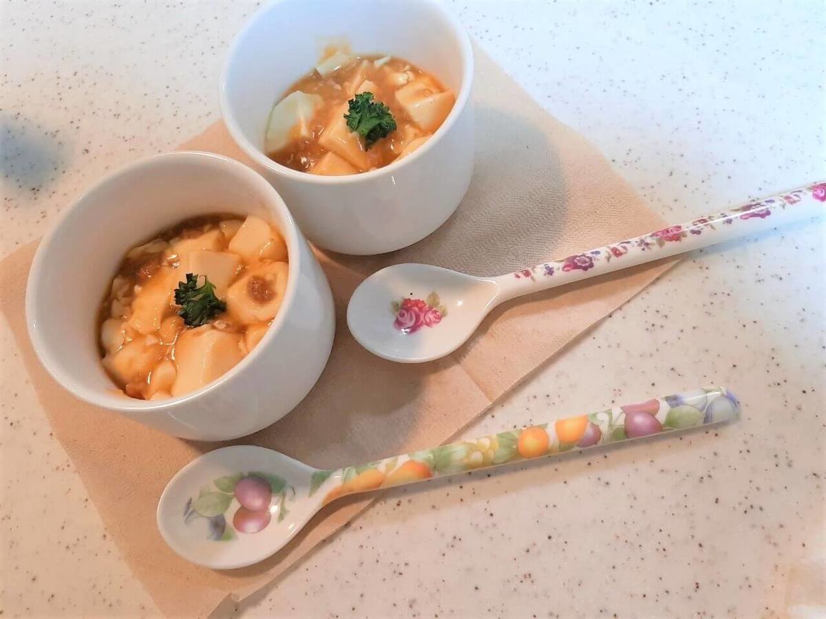 工程としては、豆腐を切る、とろみ粉を混ぜる、あとは火を通すくらいしかしていないので10分もかからずに完成しました。