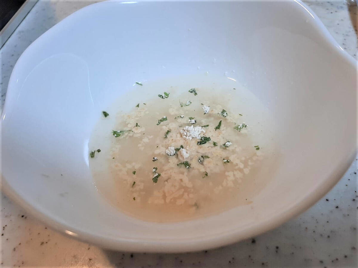 水に入れたとろみ粉です。しっかりと水と混ぜないとだまになるので気を付けましょう。
