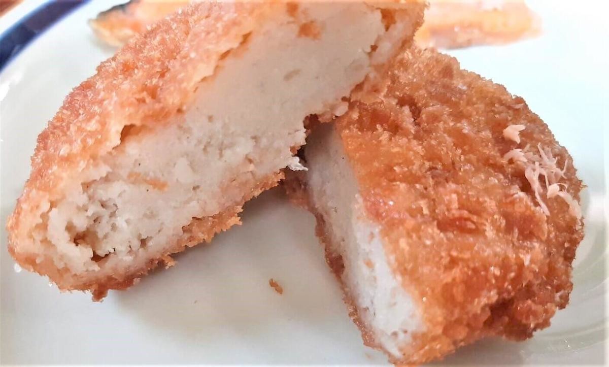 コロッケの中身はしっとりとした甘みのある味付けのおからのような……。これ、ポテトなのでしょうか、気になる人は一度食べてみてください。