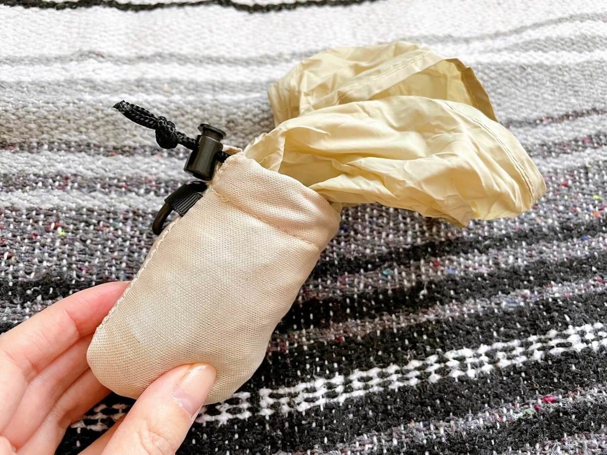 まず、収納袋とエコバッグが一体型になっていて、しかも畳まずくしゃくしゃっと収納できます。