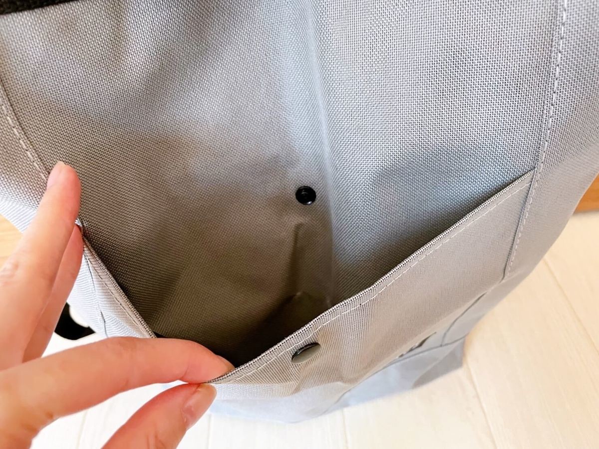 外側にも大きなポケットがついているので、お財布や鍵、スマホを入れておけてとっても便利です。
