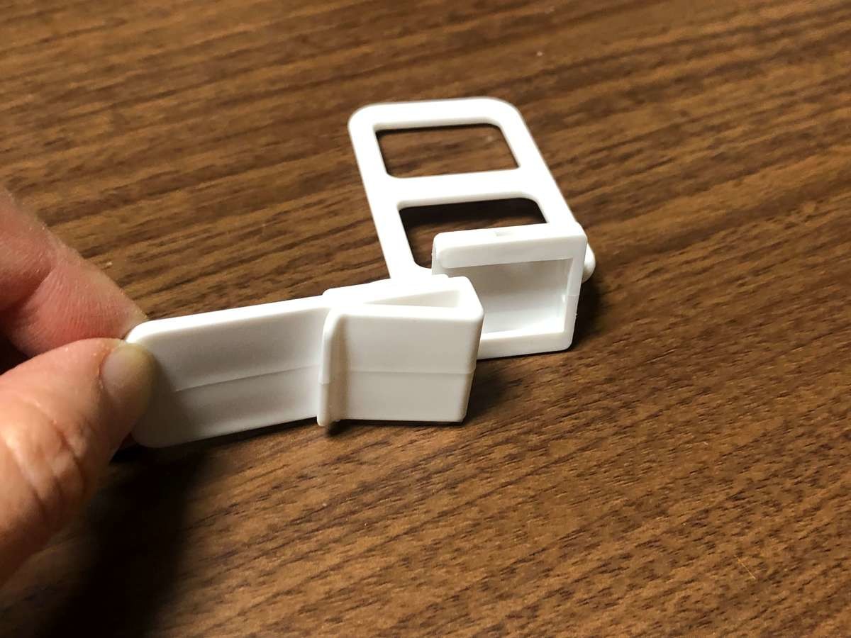 「冷蔵庫ドアポケット仕切り2wayタイプ」は、フックの部分と仕切りの部分が取り外しできるようになっています。