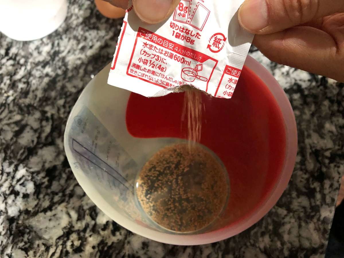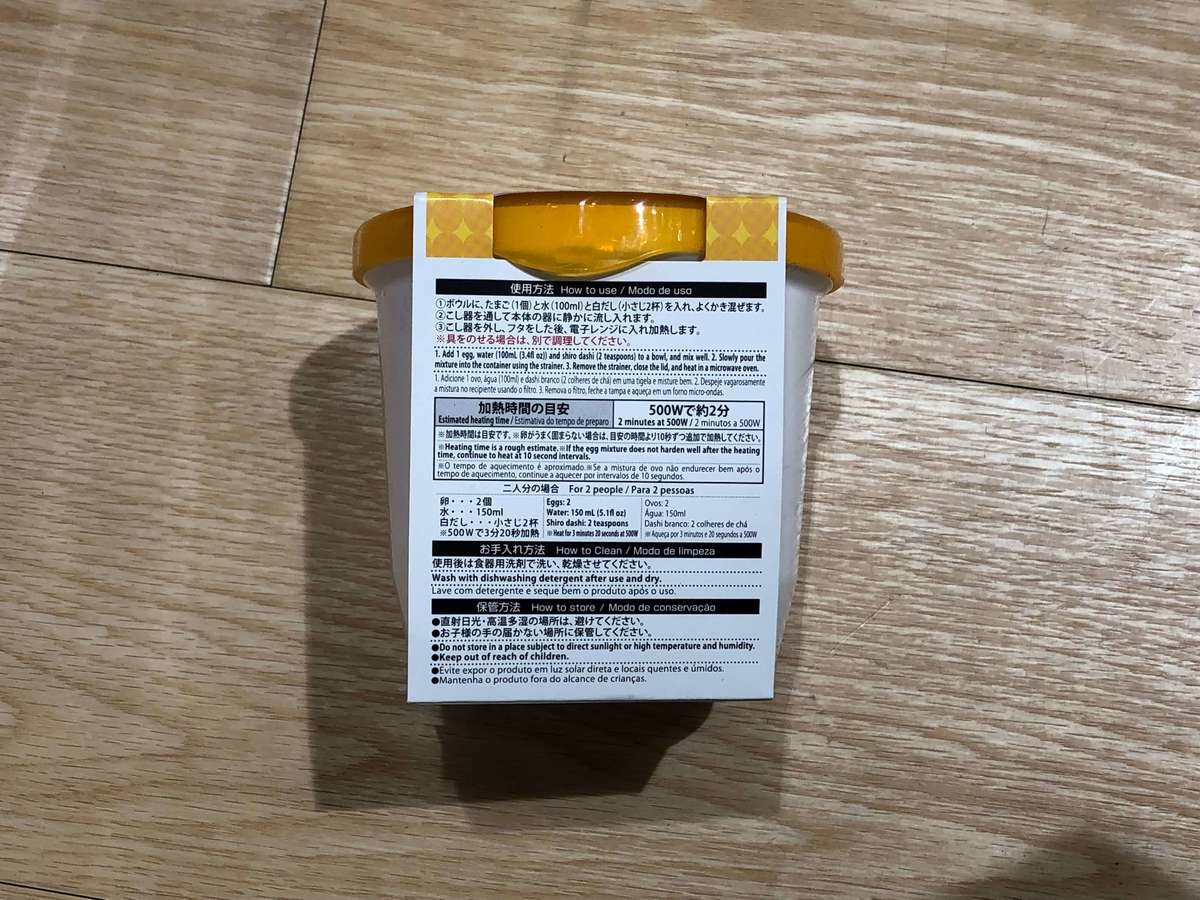 説明書にある材料は卵と白だしだけ。材料少なめで嬉しいですね。残念なことに我が家には白だしがなかったので、今回は和風の顆粒だしで代用。