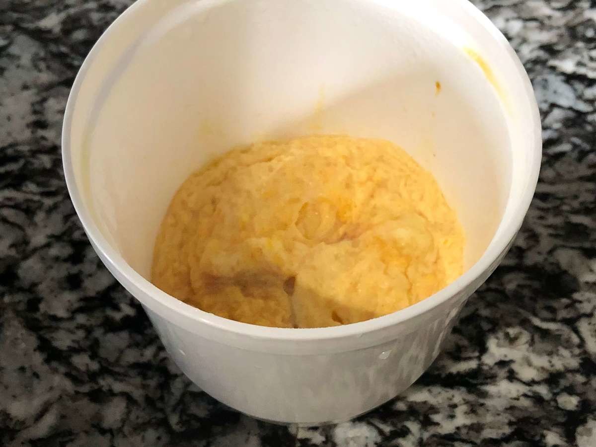 2分でもカップを傾けて卵液が流れ出るようだったら、さらに何秒か追加するといいみたい。