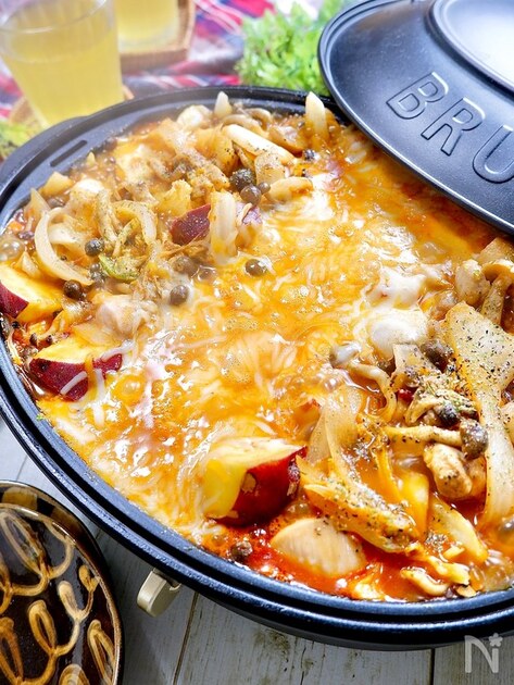 ホットプレートで豪快に楽しめるボリューム満点のチーズダッカルビ。冬においしくなる野菜をふんだんに盛り込んでいるので栄養たっぷり。家族みんなで、あつあつ&とろとろチーズを味わい尽くせます。