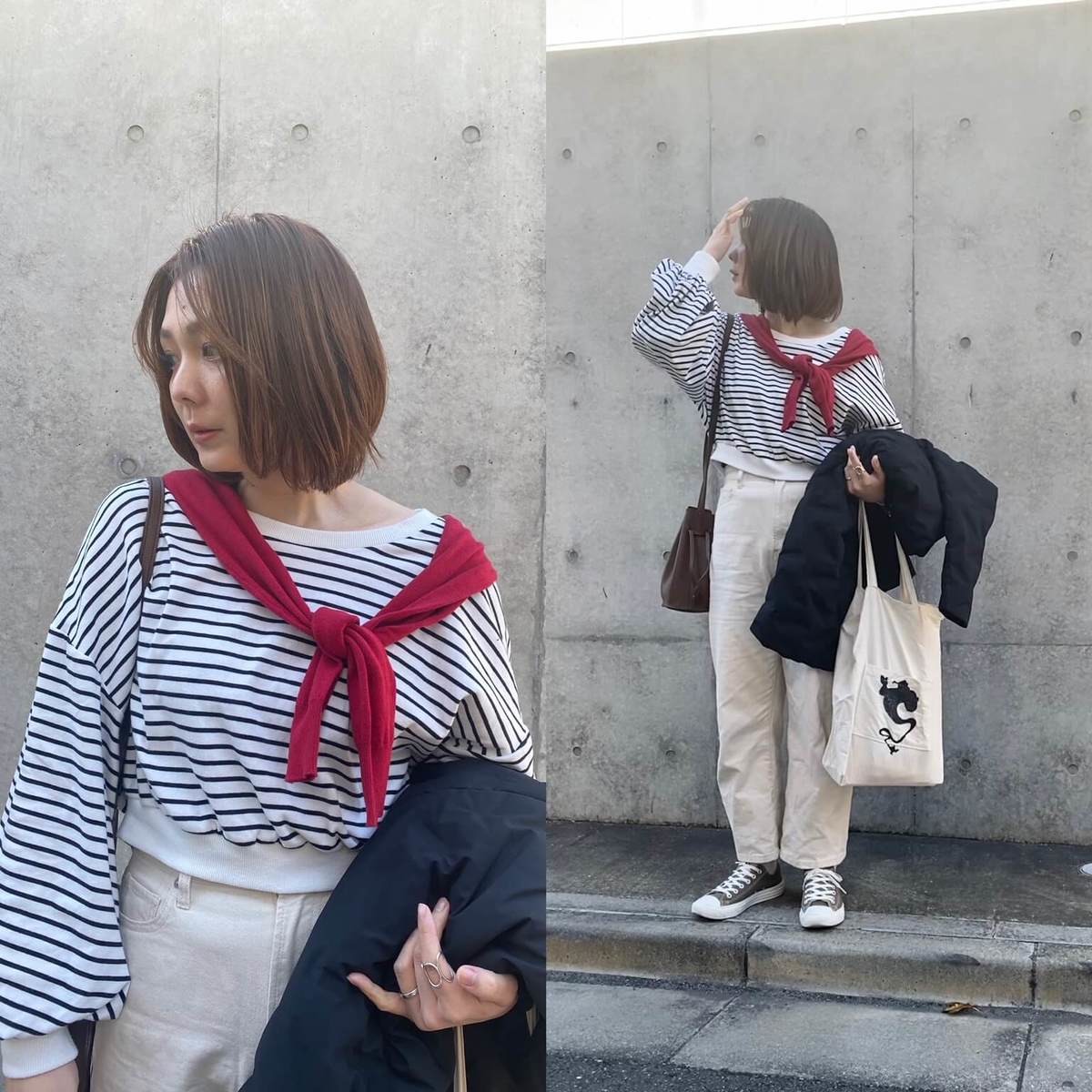 ボーダーやトレンチコートの上から肩掛けすれば、パリっぽいスタイリングに。 赤のさし色を効かせると計算されたお洒落を演出できます。