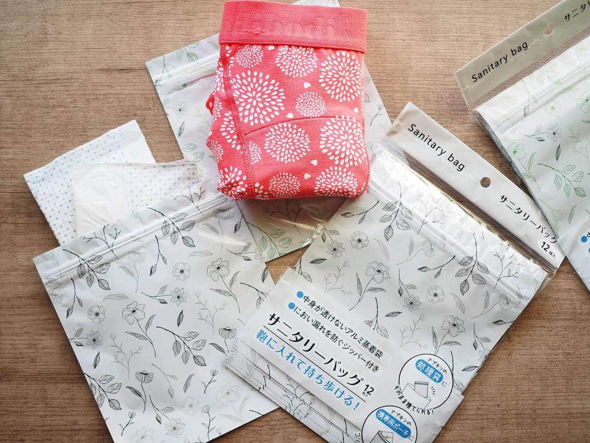 続いてご紹介するのは、使用済みの生理用品など見せたくないゴミをスマートに運べる「サニタリーバッグ」です。
