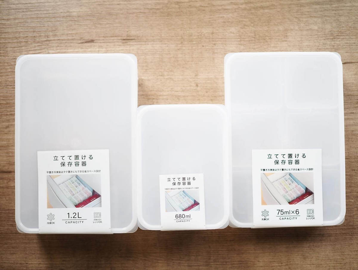 サイズはたっぷり入る1.2L、冷凍ご飯にも便利な680ml、お弁当のおかずの小分けや離乳食にもぴったりな75ml×6の3種類があります。
